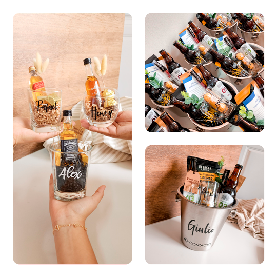 Descubre nuestra amplia gama de opciones: Desde opciones con y sin alcohol, con productos gourmet, hasta regalos prácticos con tazas y libretas.